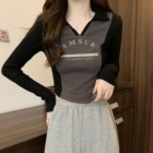撞色polo领长袖...