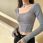 纯欲紧身U领长袖...