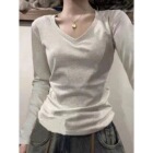 弹力螺纹棉V领正...