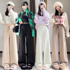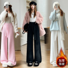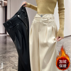 杏色加绒阔腿裤...