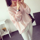 跨境粉色条纹长...