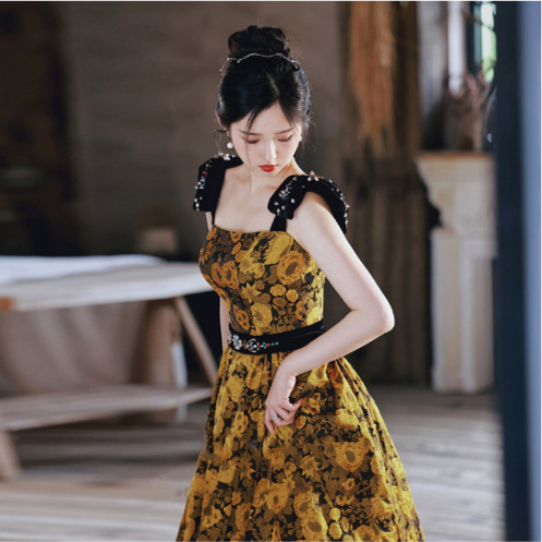 黑色亮片挂脖晚...
