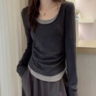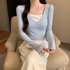 假两件V领长袖春...
