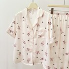 粉色蝴蝶提花睡...