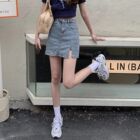 复古高腰开叉牛...