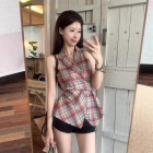 法式复古格子露...