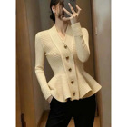 杏色荷叶边针织...
