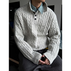 可翻领绞花纽扣...