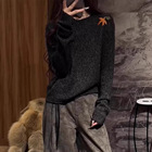 黑色圆领长袖针...
