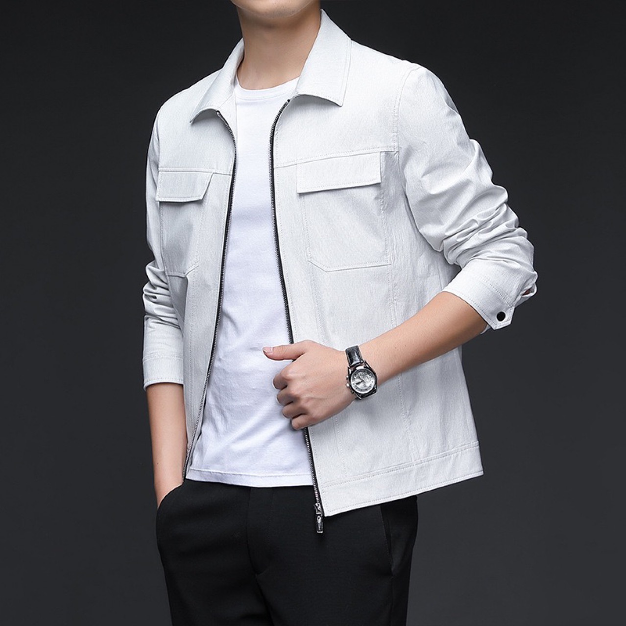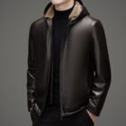 连帽男士加绒皮...